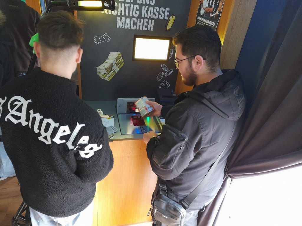 Die Schüler/innen konnte sich im Truck ausprobieren. Wer scannt am schnellsten die meisten