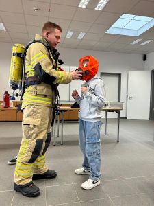 Nach einer herzlichen Begrüßung durch die Feuerwehrleute begann die Führung durch das Feuerwehrhaus. Die Kinder staunten über die modernen Einsatzfahrzeuge, erfuhren, welche Ausrüstung im Notfall benötigt wird, und durften sogar selbst einmal in eine Uniform schlüpfen. Besonders beeindruckt waren sie von der Atemschutzausrüstung, die die Feuerwehrmänner und -frauen im Ernstfall tragen müssen.