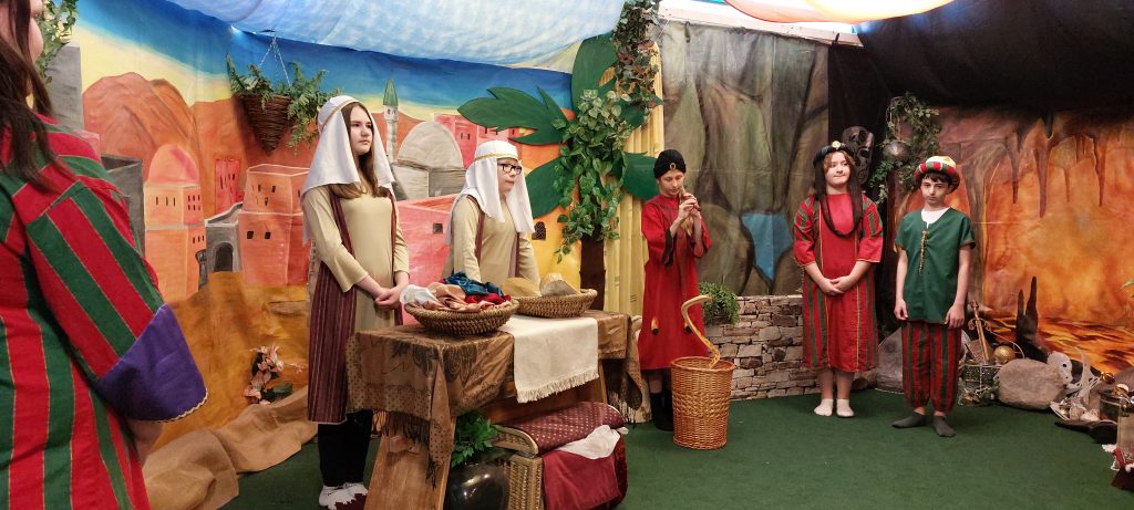 Für alle 29 Kinder gab es tolle Kostüme, die die Rollen lebendig werden ließen. Nach kurzen, aber intensiven Proben hieß es dann „Kamera läuft!“ und die einzelnen Szenen wurden mit viel Eifer und Begeisterung aufgenommen.