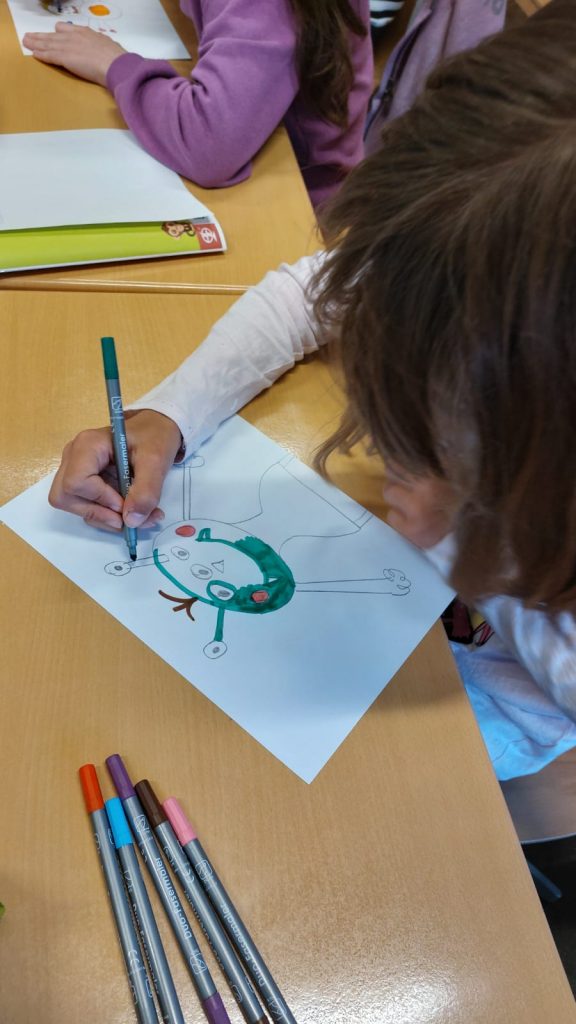Trotz dieser Herausforderung (oder vielleicht gerade deshalb!) war die Woche ein voller Erfolg. Die Lernenden wurden spielerisch und kreativ an die Sprache herangeführt. In kleinen Gruppen entstanden Theaterstücke, eigene Projekte und fantasievolle Monster – alles in englischer Sprache. Die vielen Sprachanlässe machten den Unterricht lebendig und motivierten alle zum Mitmachen.