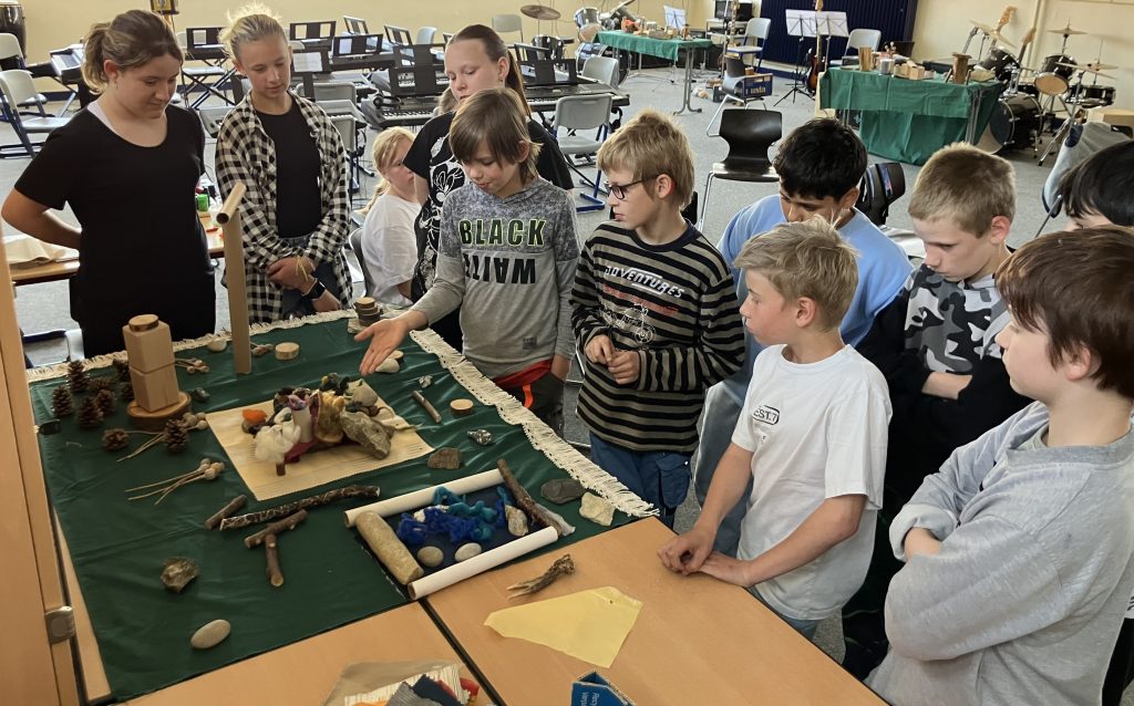 Besonders beliebt: das Tischtheater. „Es ist faszinierend, wie die Kinder mit einfachen Materialien wie Korken, Steinen und Tüchern kleine Bühnen bauen und dann die Geschichte, die sie gerade gehört haben, in ihrer eigenen Sprache nacherzählen“, sagt Klassenlehrerin Lea Afflerbach.
