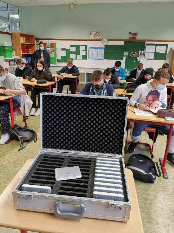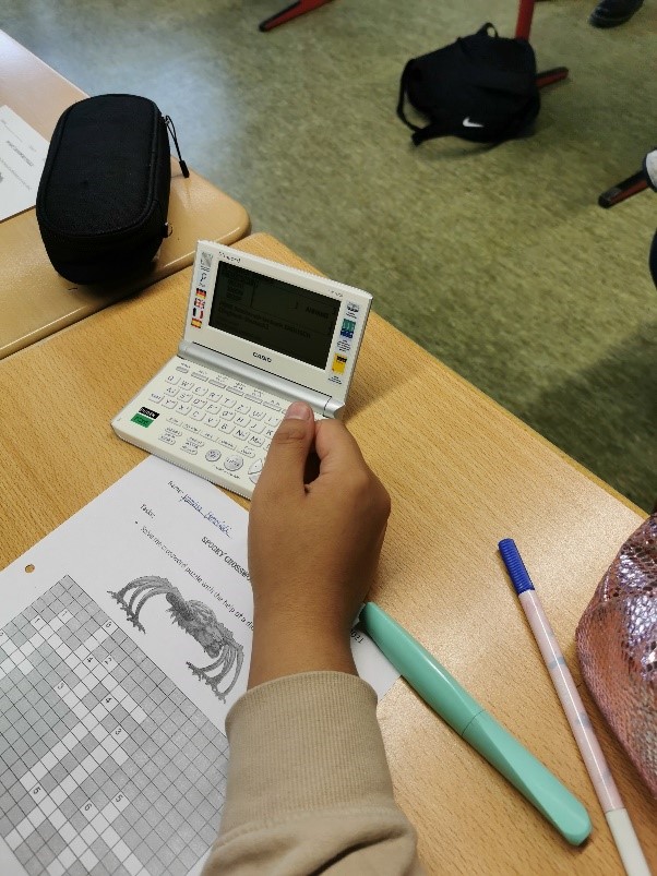 Durch die Förderung von der Bürgerstiftung Ostfalen konnten wir drei Koffer mit jeweils 30 digitalen Wörterbüchern (Casio EW G200) anschaffen. Diese digitalen Wörterbücher fanden schon ihren Einsatz während der EiA-Wochen (Oktober und November 2021). Hinzu wurden sie bereits bei den Klassenarbeiten und im regulären Englischunterricht verwendet.