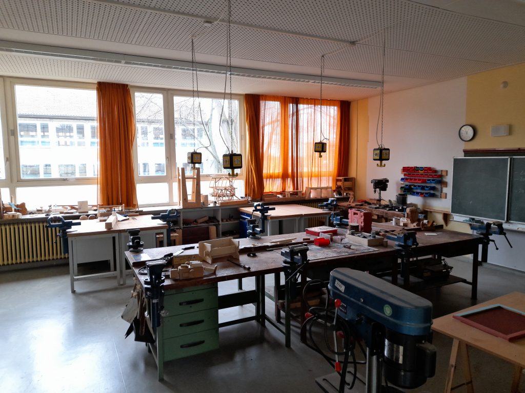 * Werkstatt – hier arbeiten die SuS praktisch und fertigen ihre Werkstücke an