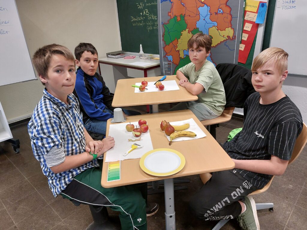 Die Schülerinnen und Schüler der 5. und 6. Klassen der Eichendorffschule Schöningen nehmen im Schuljahr 2025/2026 mit großer Begeisterung am Schulobstprogramm des Landes Niedersachsen teil. Regelmäßig wurde frisches Obst geliefert, das jedoch nicht nur einfach verzehrt wurde – vielmehr setzten sich die Kinder aktiv und kreativ mit den Lebensmitteln auseinander.