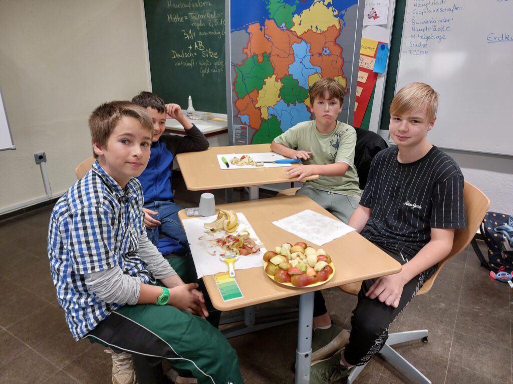 Ein weiterer wichtiger Bestandteil des Projekts war das Thema Nachhaltigkeit. Der anfallende Müll wurde bewusst getrennt, und die Kinder beschäftigten sich mit Fragen rund um den Anbau von Obst sowie die Lieferketten, die hinter den Produkten stehen. So erhielten sie einen Einblick in die Herkunft ihrer Lebensmittel und entwickelten ein besseres Verständnis für deren Wert.