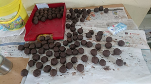 Zu Beginn des Schuljahres machten wir uns auf den Weg ins Paläon, um etwas über Wild- und Honigbienen und die Pflanzen am Paläon zu erfahren. Hier wurde uns klar, dass es nicht gut um die Bienen steht und wir machten uns in den nächsten Tagen in der Schule daran, mehr Informationen über das Sterben von Bienen herauszufinden. Ganz schnell wurde uns deutlich, dass wir hier etwas tun müssen und unser Ziel war es aktiv zu werden. Frau Wetterich und Frau Kuhri halfen uns dabei und sortierten mit uns zusammen unsere Ideen und machten den Vorschlag, dass wir mit unseren Ideen doch eine Schülerfirma gründen könnten. Gesagt, getan! Nun war es daran einen Namen für unsere Firma zu finden, einen Namen für unser Produkt zu finden, mit der Produktion zu beginnen, Etiketten zu gestalten,….